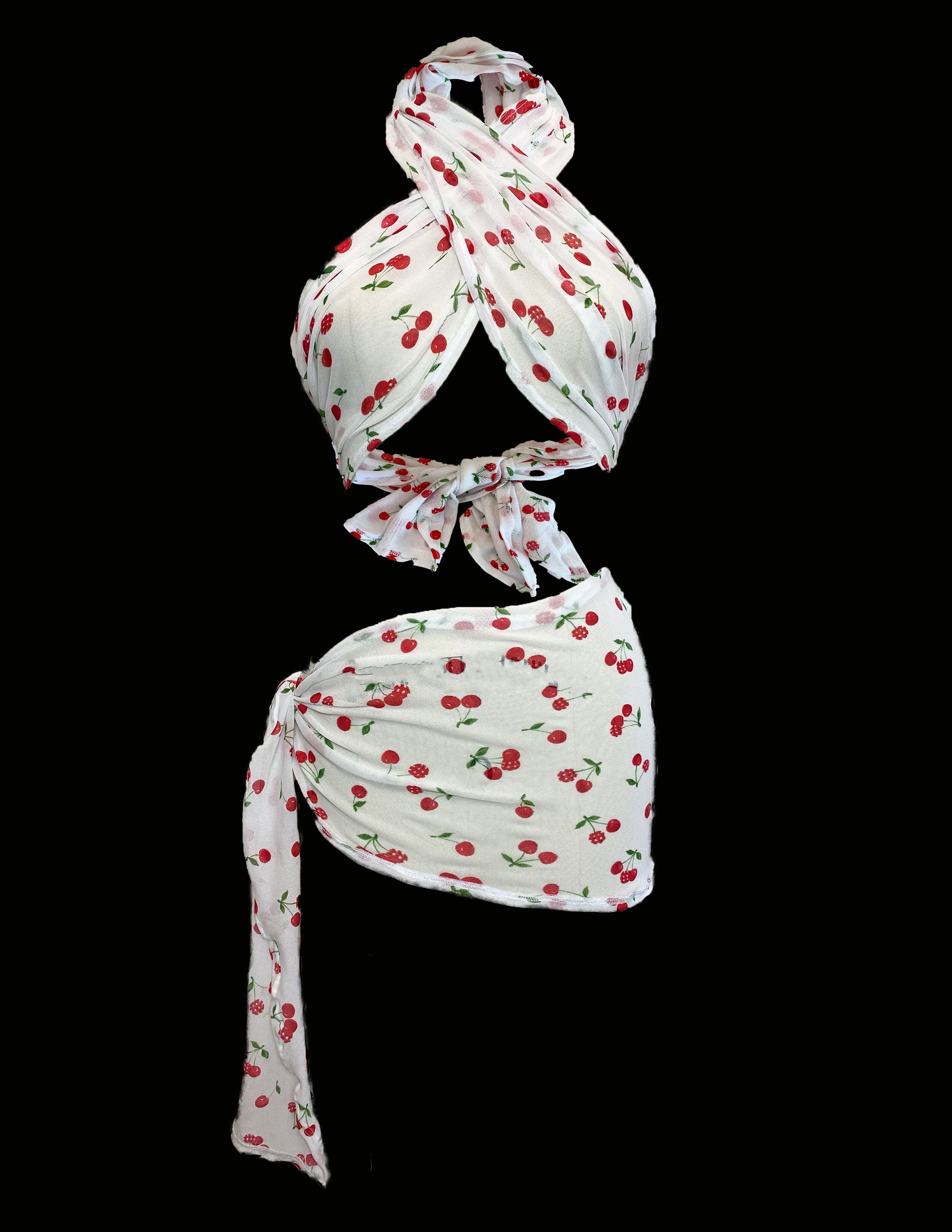 - Mesh Cherry wrap top + Cherry wrap (can be worn as a scarf or skirt)