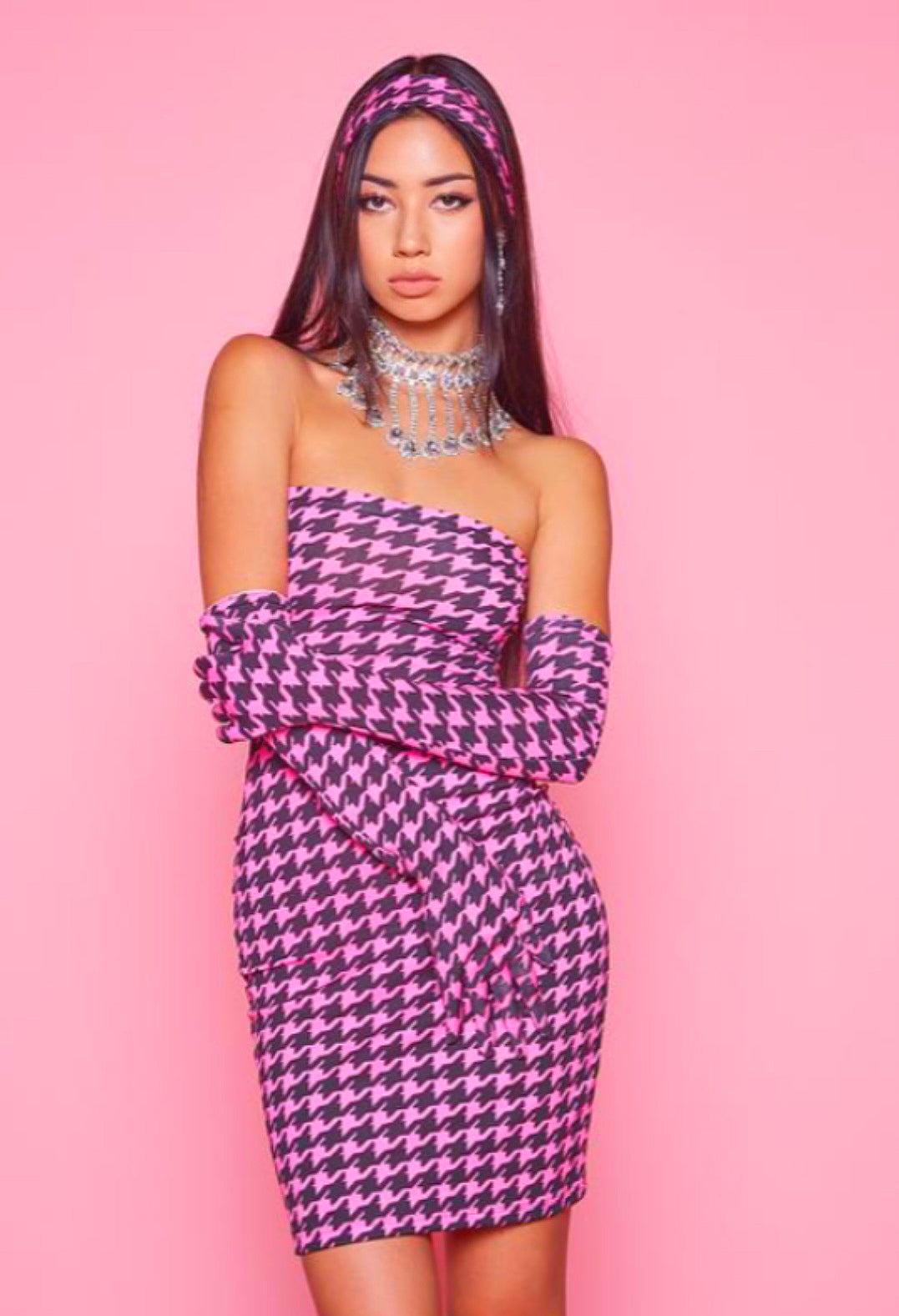 - Houndstooth spandex tube dress