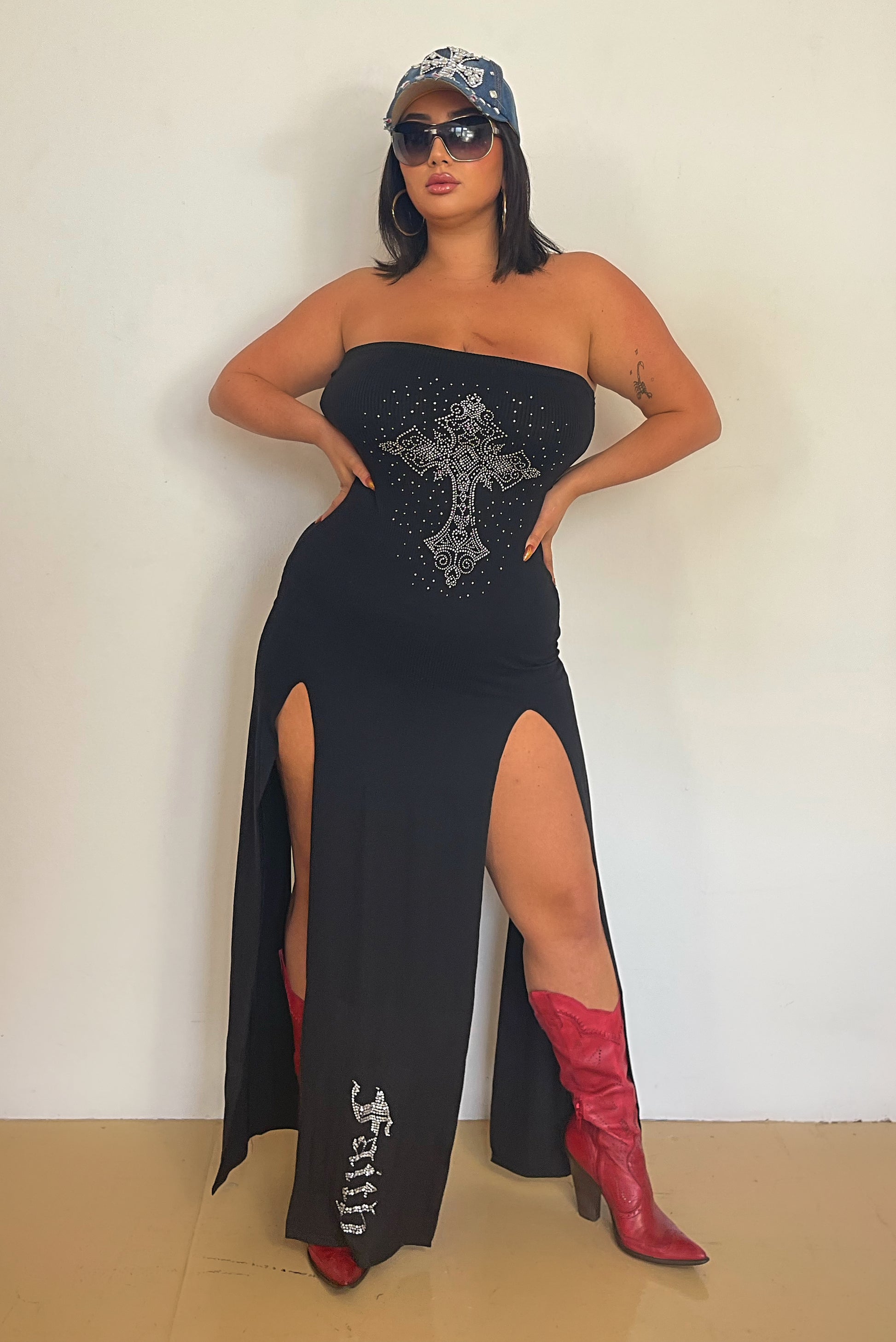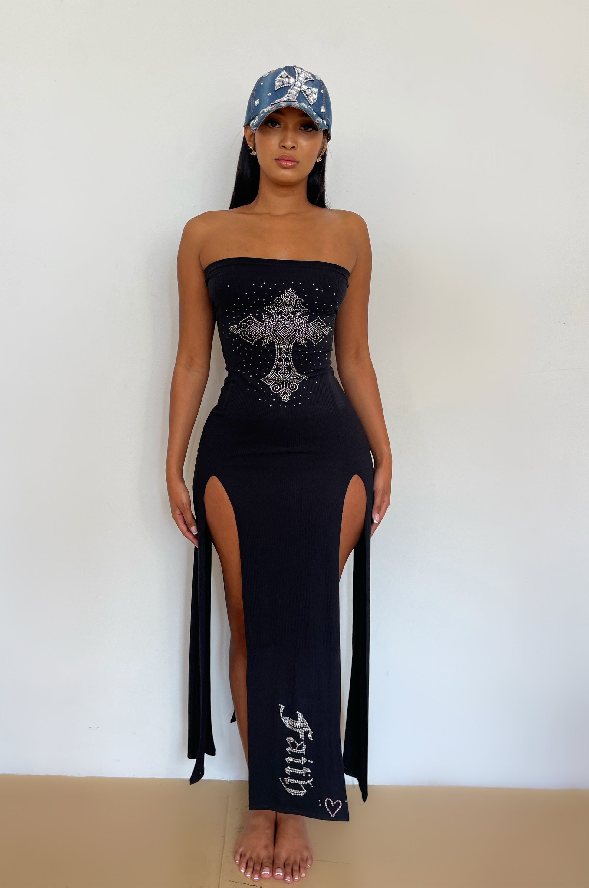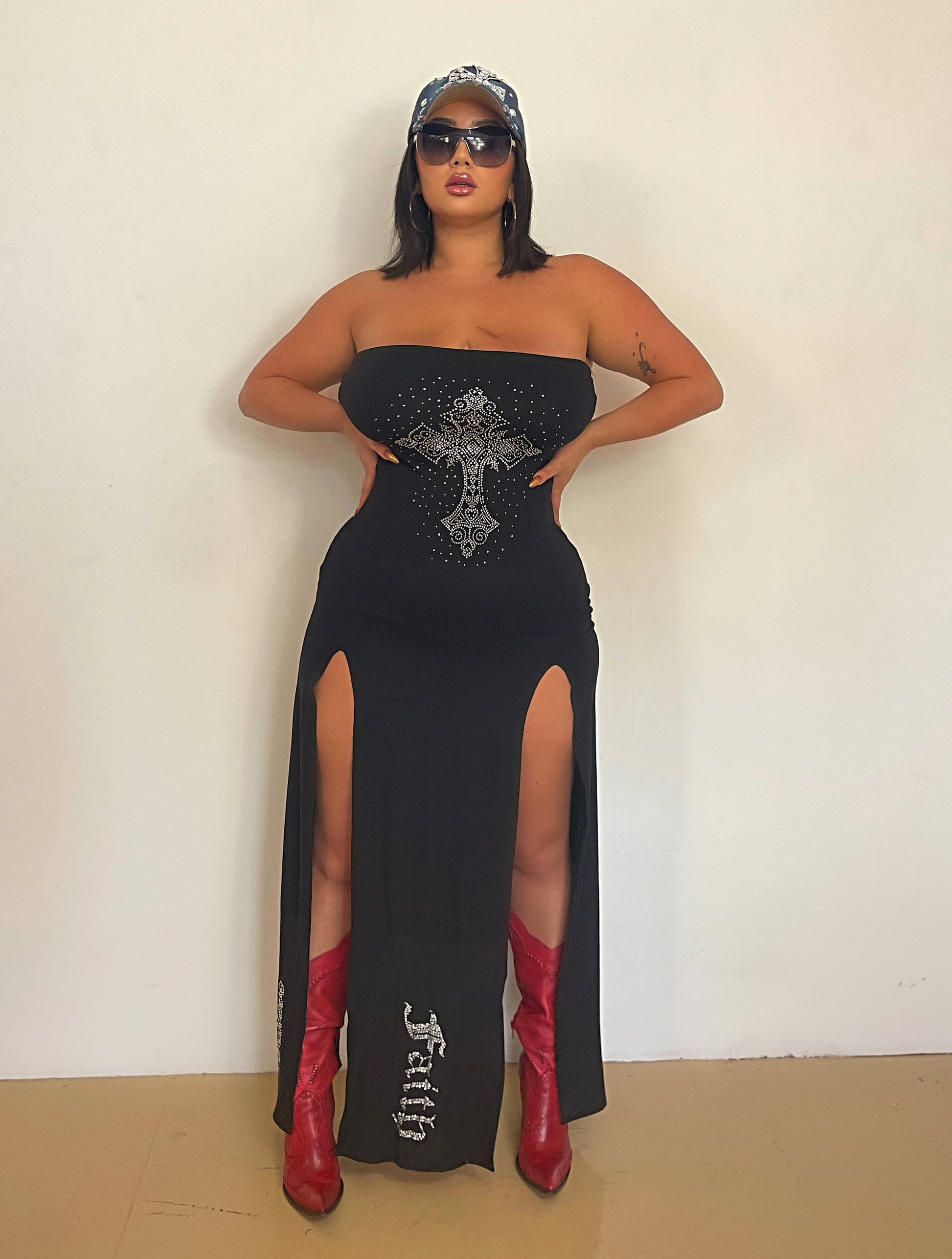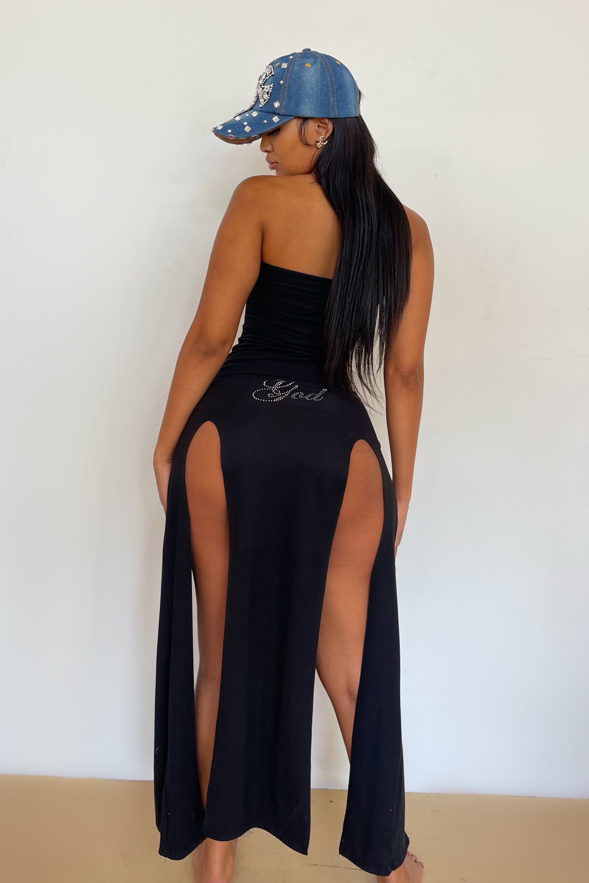 - Black slit dress (both sides) - front and back