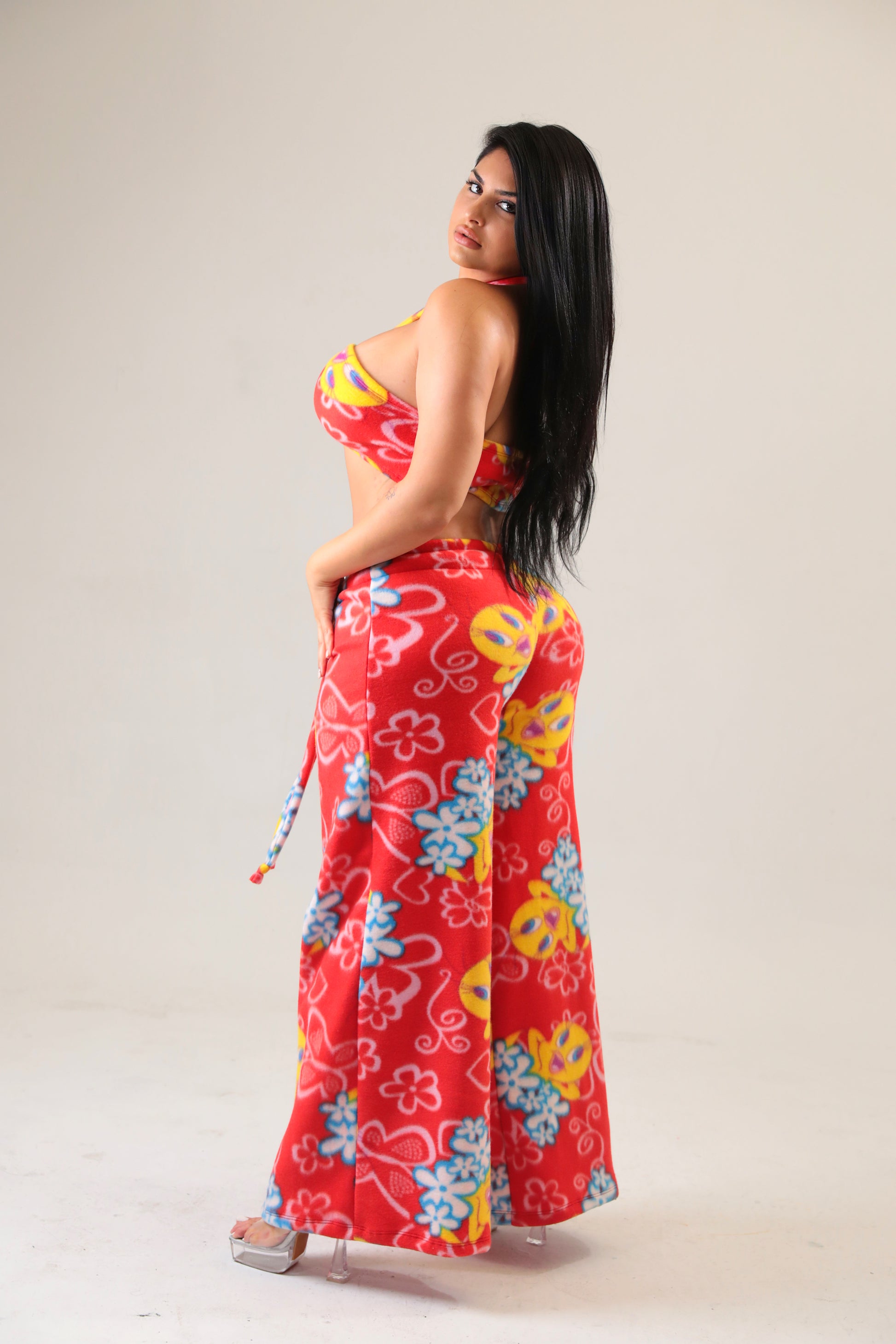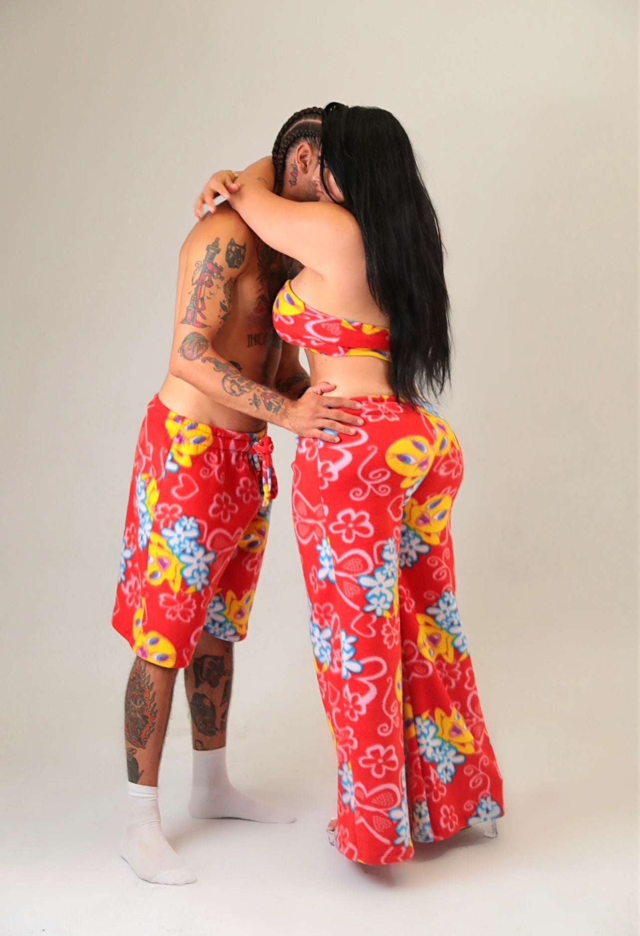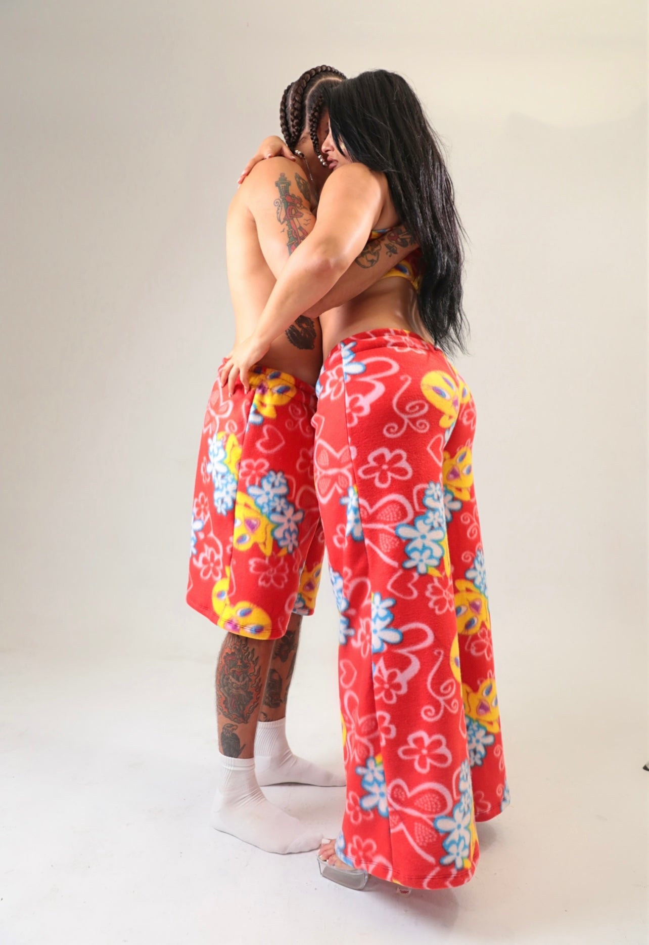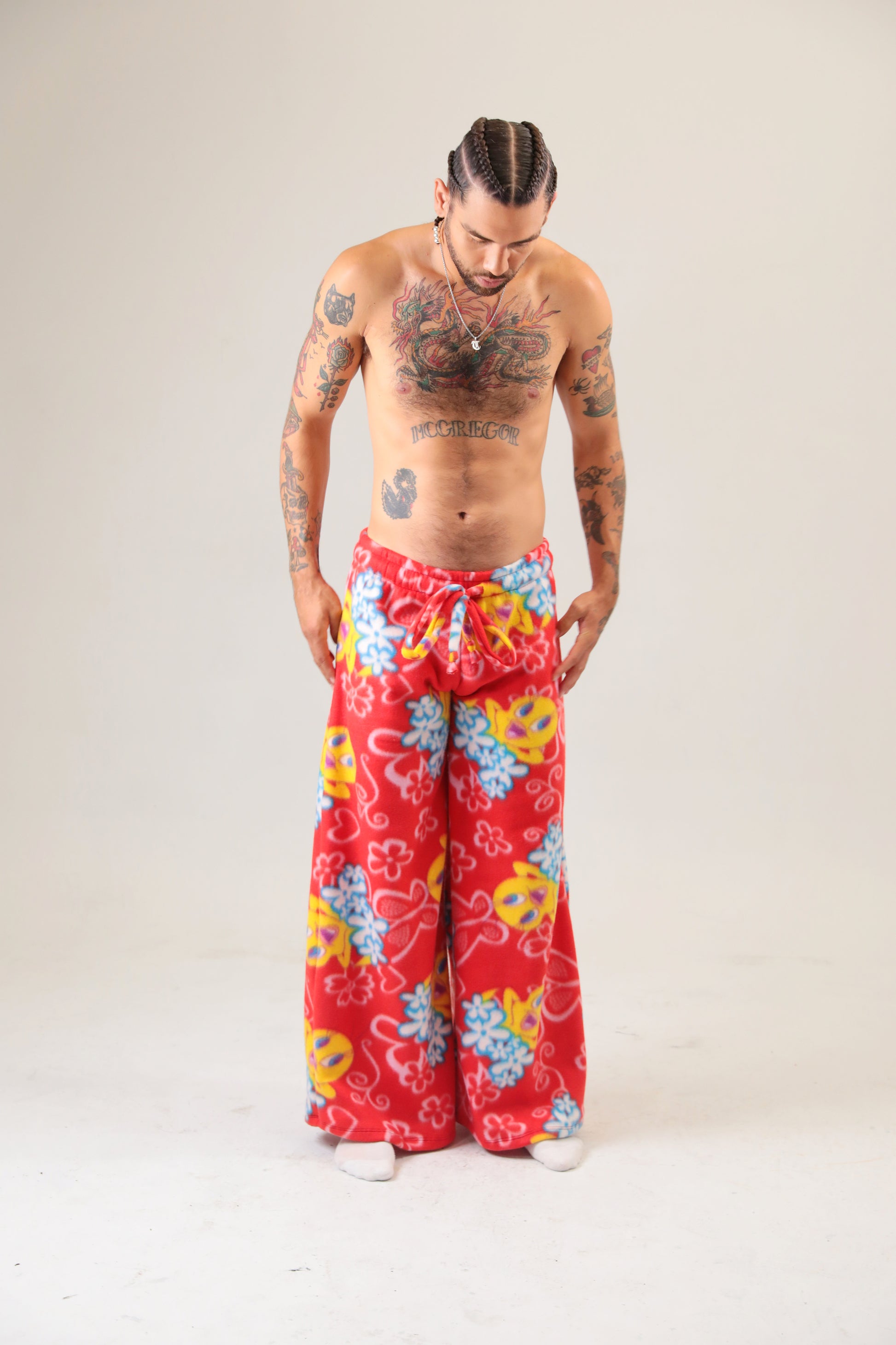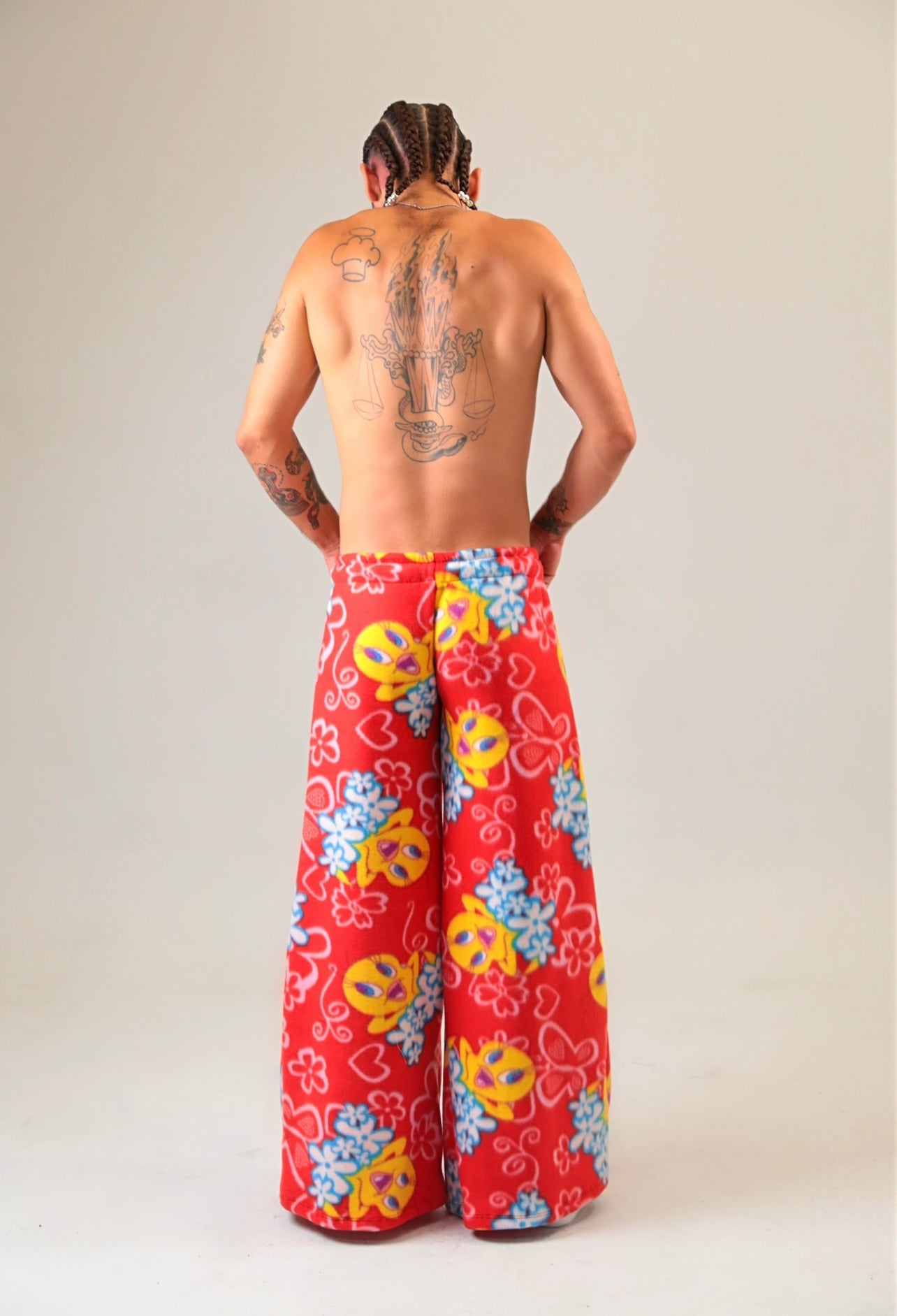 - Fleece handmade tweety bird flared out pants for men and women (unisex)