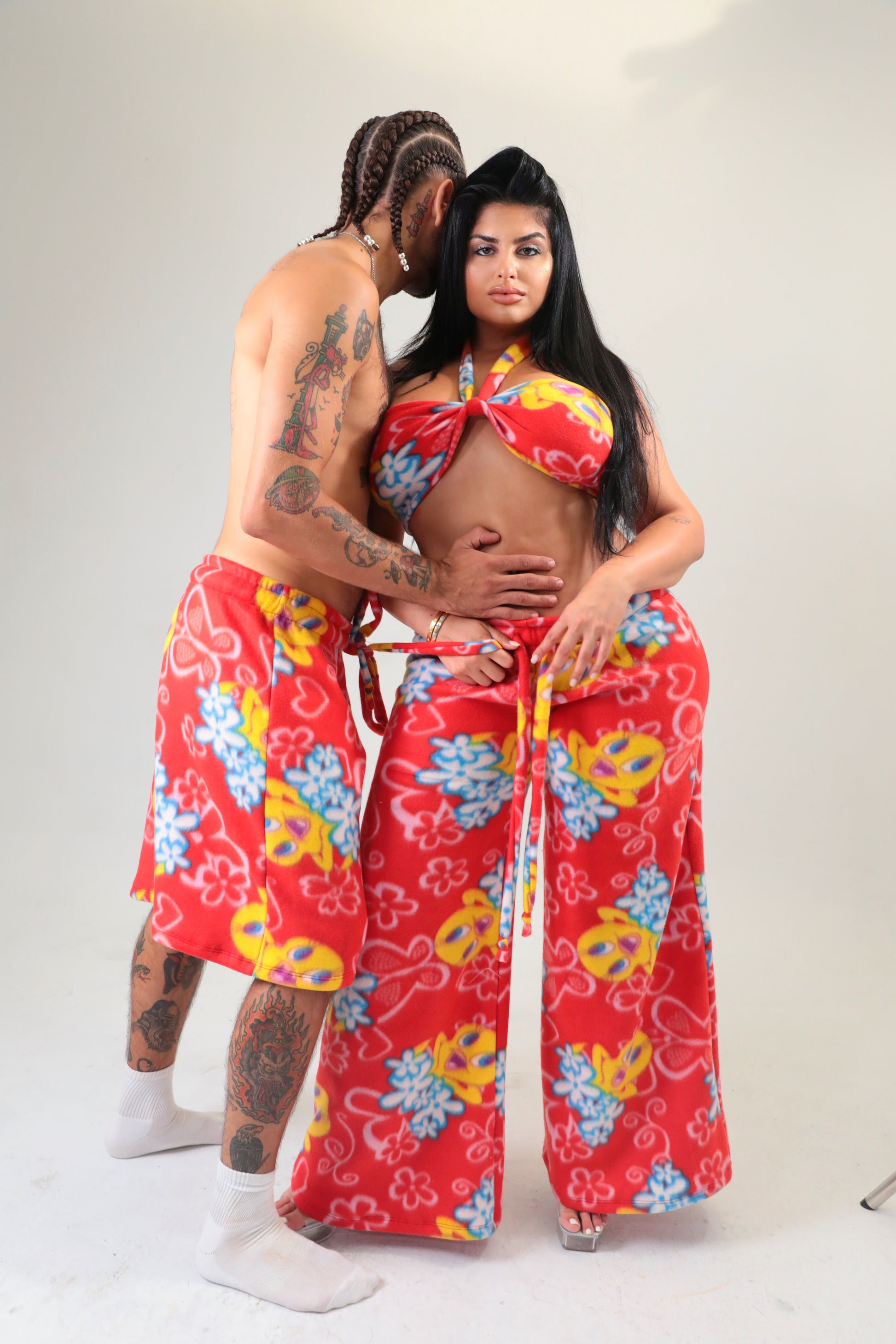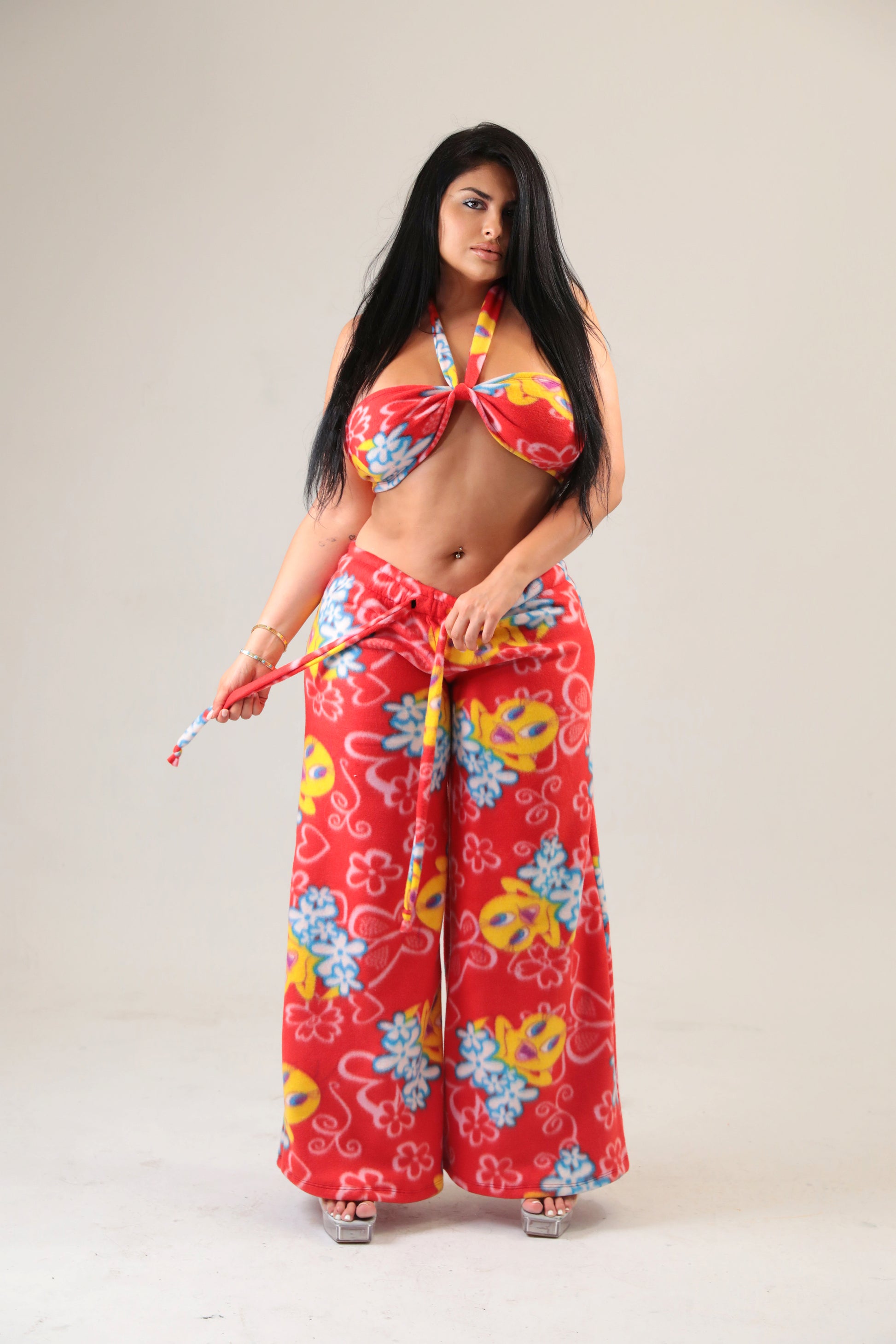 - Fleece handmade tweety bandeau top with added string (removable) ties around neck