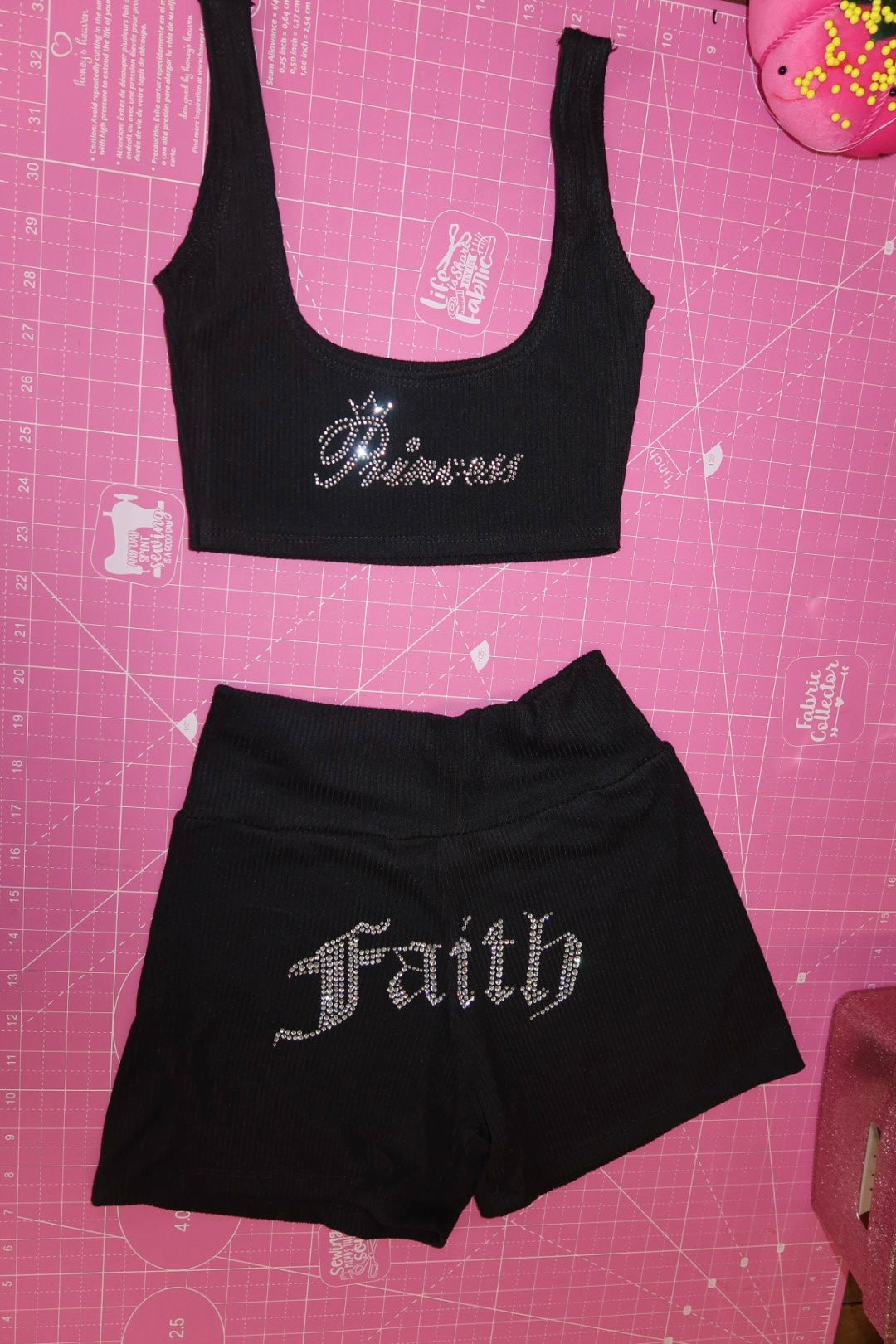 - Embellished in rhinestones shorts & top set